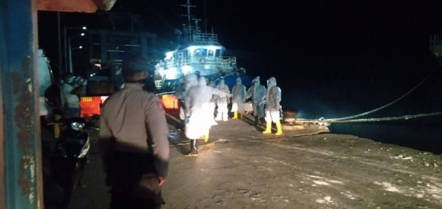 Setelah diberikan pemahaman oleh Ketua DPRD Kab. Kepulauan Tanimbar, akhirnya seluruh penumpang bersedia dilakukan pengambilan sample untuk test SWAB, selanjutnya pukul 17.56 wit dengan menggunakan 1 (satu) Unit KNP 5210 milik Kantor UPP Pelabuhan Klas II Saumlaki, Tim Kesehatan Gabungan yang terdiri dari Dinkes Prov. Maluku dan Dinkes Kab. Kepulauan Tanimbar, bertolak menuju KM. Sanus 34 untuk melakukan pengambilan sample SWAB.
