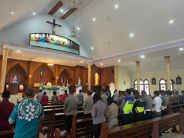 Tribratanews.polrestanimbar.com – Polda Maluku, Polres Kepulauan Tanimbar, Personil TNI Polri, ASN, karyawan karyawati, Sarjana atau cendekiawan yang beragama Katolik mengikuti Misa Jumat I (Pertama) yang bertempat di Gereja Katholik St. Mathias Saumlaki, Kelurahan Saumlaki, Kecamatan Tanimbar selatan, kabupaten kepulauan Tanimbar, Jumat (05/05).