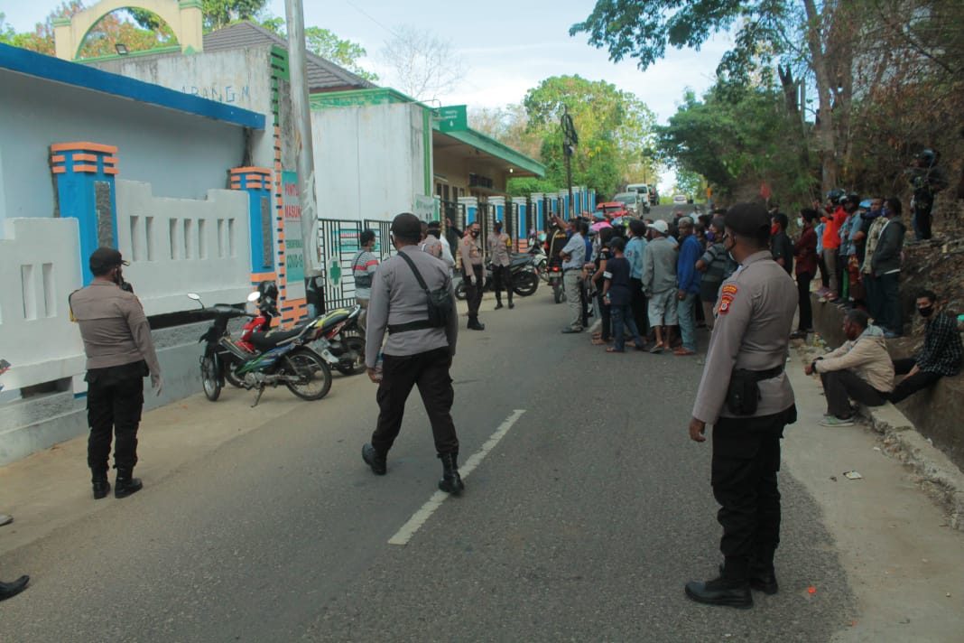 Tribratanews.polrestanimbar.com – Polda Maluku, Polres Maluku Tenggara Barat, Senin 16 November 2020, pukul 09.00 wit bertempat pada RSUD dr. P.P. Magretty Saumlaki, Kabag Ops Polres Kepulauan Tanimbar, Kompol Arnold Tiranda pimpin personil Operasi Aman Nusa Polres Kepulauan Tanimbar dan Polsek Tanimbar Selatan serta pesonil Brimob berikan Pengamanan terhadap Proses Pemakaman Jenazah yang terisolir mengidap Covid-19.