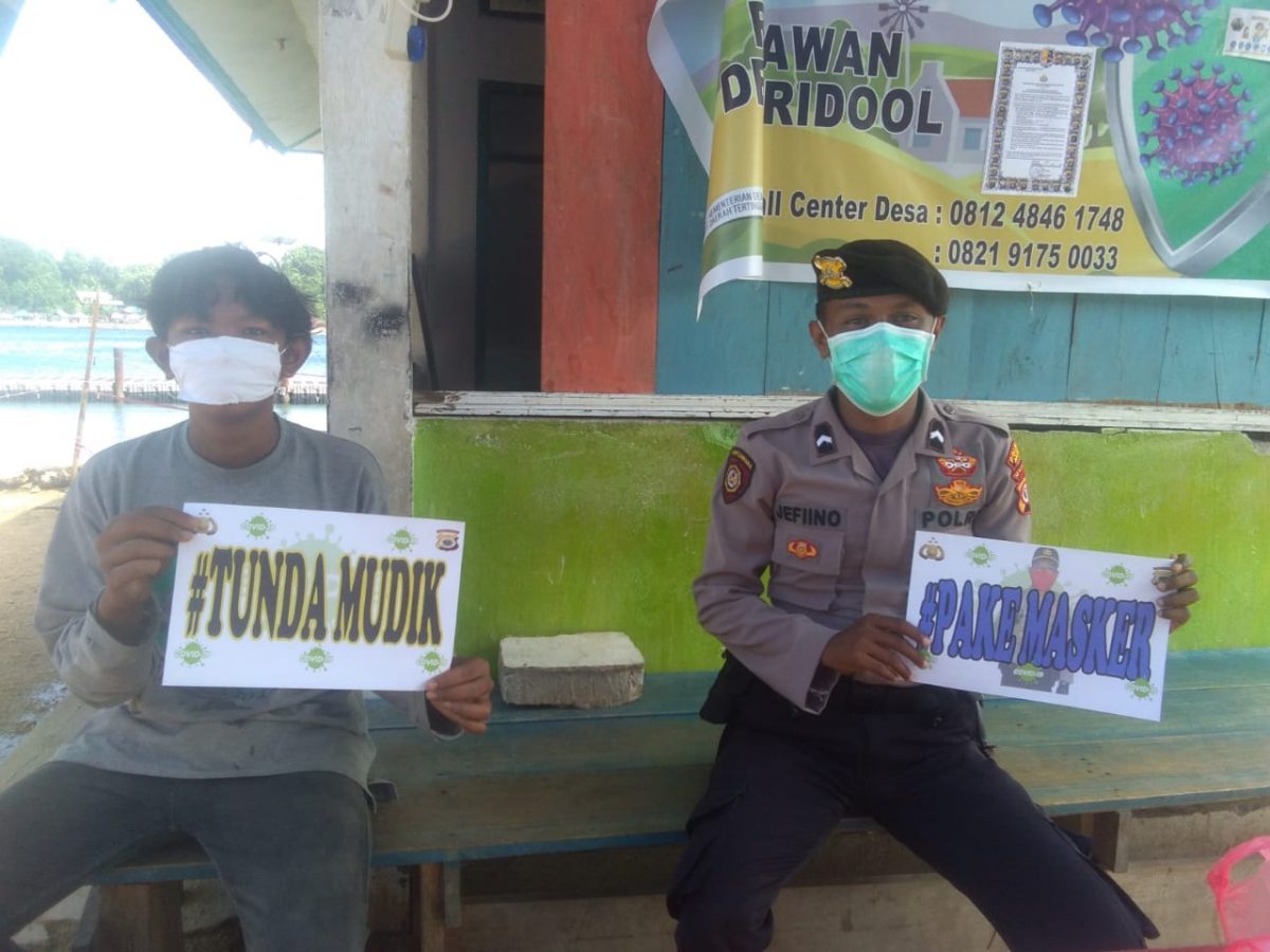 Tribratanews.polrestanimbar.com – Polda Maluku, Polres Maluku Tenggara Barat, personil Polsek Larat gencar mengajak warga Tanimbar baik yang ada di Kota Larat maupun yang berada ditanah perantauan, untuk tidak Mudik atau pulang kampung, guna mencegah penyebaran dari Virus Corona atau Covid 19.Kamis (23/4/2020).