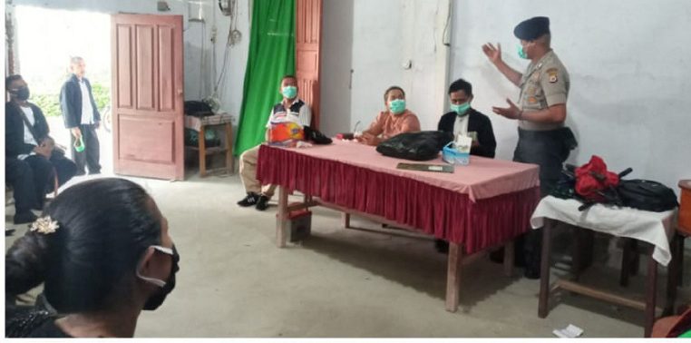 Tribratanews.polrestanimbar.com – Polda Maluku, Polres Maluku Tenggara Barat, Minggu 07 Juni 2020, pukul 08.30 Wit, bertempat di Gedung Gereja Berhesda. Jemaat GPM Tutukembong PS. Kanit Binmas Polsek Nirunmas Bripka Freyjon R. Sianressy dan PS. Kanit Reskrim Polsek Nirunmas Brigpol J. Awiara melaksanakan Giat Sosialisasi Prosedur Standar Tatanan Baru / New Normal Kepada Ketua Majelis Jemaat bersama seluruh Perangkat Majelis Jemaat GPM Tutukembong.