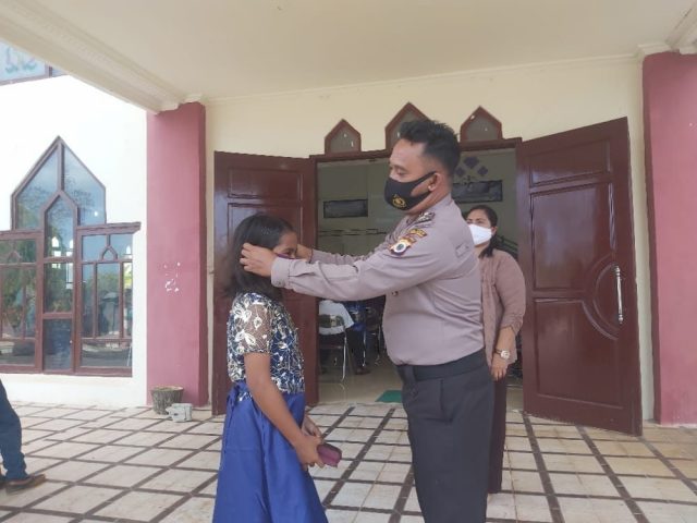 Tribratanews.polrestanimbar.com – Polda Maluku, Polres Maluku Tenggara Barat, Minggu, 27 September 2020, pukul 09.00 wit bertempat di Gedung Gereja Imanuel GPM Adaut Desa Adaut Kecamatan Selaru Kabupaten Kepulauan Tanimbar, personil Polsek Selaru bersama Bhabinkamtibmas Adaut Brigpol M. I. Lambiombir mengikuti sekaligus melaksanakan Pengamanan Ibadah Minggu dengan mempedomani hal – hal terkait Edukasi Sosialisasi dan Pendisiplinan Protokol Kesehatan Covid-19.