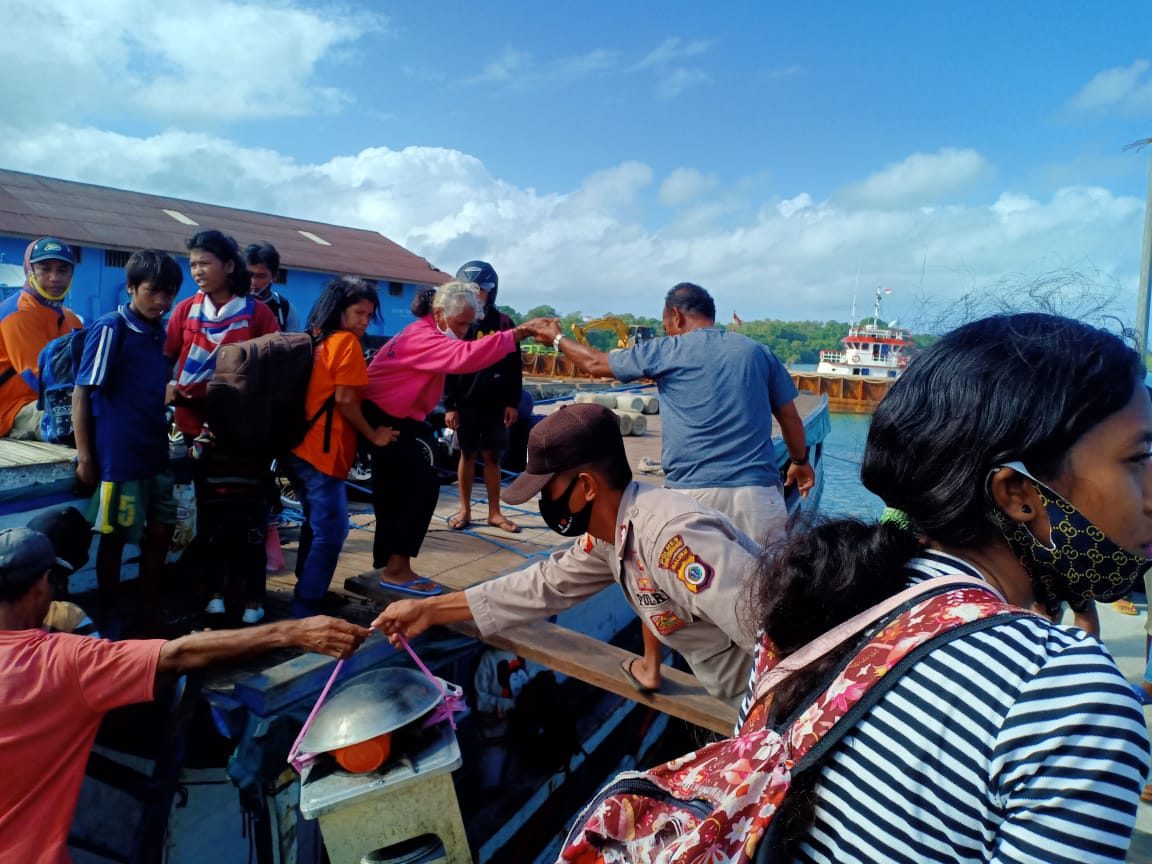 Tribratanews.polrestanimbar.com – Polda Maluku, Polres Maluku Tenggara Barat, Selasa 07 Juli 2020, pukul 09.30 wit, Personil Pos Pol KP3 Polsek Tanimbar Sealtan Pelabuhan Saumlaki, Bripka R. Maulany dan Bripka Dharma, melaksanakan Pengamanan terhadap Penumpang turun Pada KLM. Daussa KW yang baru tiba dari Desa Adaut Kecamatan Selaru Kabupaten Kepulauan Tanimbar.