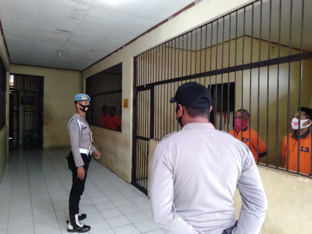 Tribratanews.polrestanimbar.com – Polda Maluku, Polres Maluku Tenggara Barat, Rabu 23 September 2020, Personil Propam Polres Kepulauan Tanimbar Giat pemeriksaan tahanan pada ruang tahanan Polres bersama personil Satuan Tahanan dan Barang Bukti Polres Kep. Tanimbar