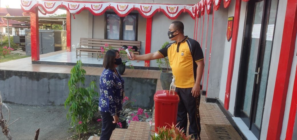 Tribratanews.polrestanimbar.com – Polda Maluku, Polres Maluku Tenggara Barat, Jumat 04 September 2020, pukul 09.10 wit bertempat di ruangan Satuan Reskrim Polres Kepulauan Tanimbar, personil Sat Reskrim Polres Kepulauan Tanimbar laksanakan kegiatan rutin pengecekan suhu tubuh personil dalam rangka antisipasi penyebaran virus covid-19.