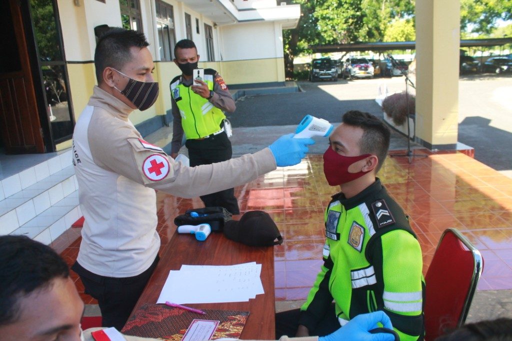 Polda Maluku, Polres Maluku Tenggara Barat – Pemeriksaan suhu badan dilakukan anggota Urkes Polres Maluku Tenggara Barat, Senin pagi, 25 Mei 2020. Hal ini dilakukan terhadap personil yang melaksanakan piket jaga pada SPKT Polres Maluku Tenggara Barat.