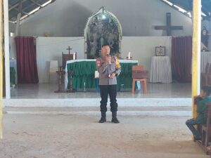 Pimpin Minggu Kasih di Gereja, Kasat Binmas Polres Kepulauan Tanimbar Imbau jaga Kamtibmas