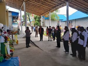 Kegiatan yang berlangsung pada tempat Pentakhtaan Arca Cristus Raja, yang berlokasi di Desa Meyano Bab, Kecamatan Kormomolin, Kabupaten Kepulauan Tanimbar tersebut dipimpin langsung oleh Kapolsek Kormomolin Iptu EVER FASSE yang menghadirkan Tokoh Agama, Tokoh Pemuda maupun Tokoh Masyarakat, Minggu (01/09/24).