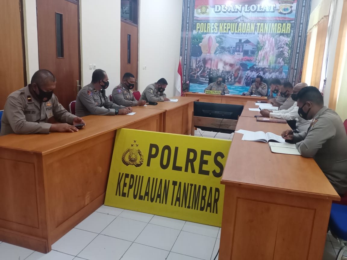 Tribratanews.polrestanimbar.com – Polda Maluku, Polres Kepulauan Tanimbar, Senin 19 April 2021, pukul 11.00 wit, bertempat di ruangan Rapat Polres Kepulauan Tanimbar, dilaksanakan Rapat Tim kelompok kerja ( Pokja ) Pembangunan Zona Integritas (ZI) Polres Kepulauan Tanimbar yang di pimpin oleh Waka Polres Kepulauan Tanimbar Kompol Hendra Y. P. Haurissa, S.H., dengan di dampingi Kabag Ren Polres Kepulauan Tanimbar Kompol M. Uwaubun.