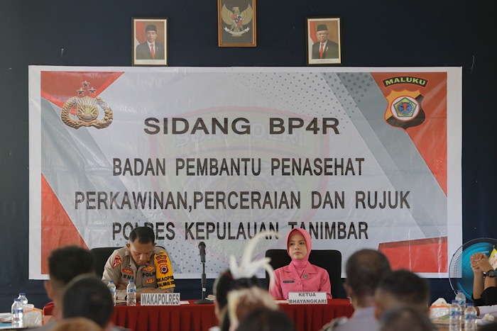 Kegiatan Sidang BP4R tersebut dipimpin oleh Wakapolres Kepulauan Tanimbar Kompol FRIHAMDENI, S.H., S.I.K., M.A., dan didampingi oleh Ketua Bhayangkari Cabang Kepulauan Tanimbar yang diwakili oleh Ketua Seksi Ekonomi Ny. UCHI HANDRY beserta Kabag SDM AKP MUSTAFA KAMAL, S.Sos., Kasiwas, Kasipropam Polres Kepulauan Tanimbar beserta pengurus Bhayangkari Cabang dan dihadiri oleh para Tokoh Agama Protestan, Islam dan Katholik serta keluarga dari masing-masing Peserta Sidang.
