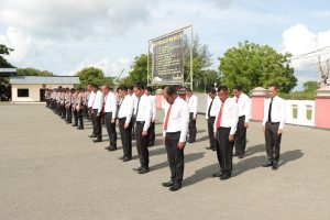 Kegiatan dilakukan dipimpin langsung Kapolres AKBP Umar Wijaya, S.I.K., selaku Inspektur Upacara dengan pejabat upacara terdiri dari Perwira Upacara dijabat Kasat Binmas Iptu J. C. Oraplean sedangkan Komandan Upacara dijabat KBO Sat Lantas Ipda A. Melsasail. Untuk susunan pasukan upacara terdiri dari 1 SSR Perwira, 1 SSR Sat Samapta, 1 SSR Sat Lantas, 1 SST gabungan Staf, 1 SST gabungan Sat Reskrim, Sat Intelkam dan Sat Resnarkoba.