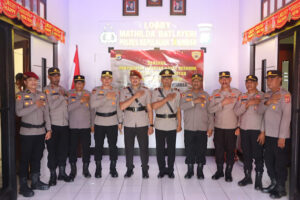 Upacara penyerahan dan serah terima jabatan berlangsung dengan khidmat, ditandai dengan pengambilan sumpah jabatan, penandatanganan berita acara, dan pemasangan tanda pangkat oleh Kapolres. Seluruh rangkaian kegiatan ini diakhiri dengan sesi foto bersama dan ramah tamah.