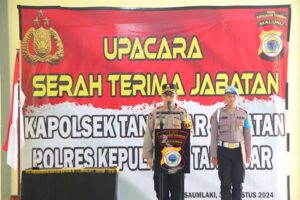 Tribratanews.polrestanimbar.com – Polda Maluku, Kepolisian Resor Kepulauan Tanimbar, Kapolres Kepulauan Tanimbar AKBP UMAR WIJAYA, S.I.K., memimpin secara langsung upacara Serah Terima Jabatan (Sertijab) Kepala Kepolisian Sektor Tanimbar Selatan yang berlangsung pada, Jumat (30/08/24) sore.