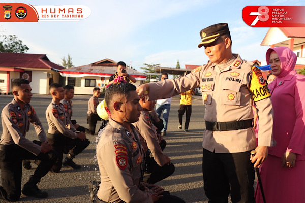 Dalam upacara tradisi penyambutan Bintara remaja tersebut ditandai dengan penyiraman bunga oleh Kapolres Kepulauan Tanimbar, Ketua Bhayangkari Cabang, para PJU beserta beserta pengurus Bhayangkari Cabang Kepulauan Tanimbar.