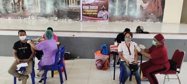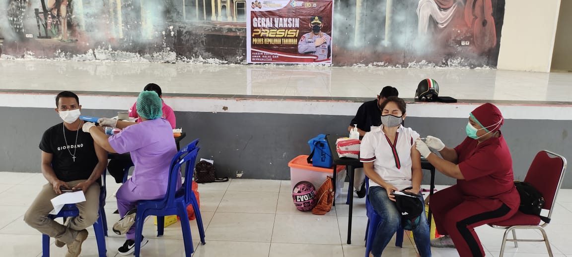 Setelah sebelumnya digelar vaksinasi tahap I pada tempat yang sama kepada masyarakat di tanggal 31 agustus 2021 lalu dan berhasil memvaksinasi 165 orang, Polres Kepulauan Tanimbar dengan menurunkan Tim Vaksinator andalannya yang merupakan anggota Bhayangkari Cabang Kepulauan Tanimbar yang berprofesi dokter dan perawat dengan dikordinir oleh Seksi Dokes dan dibantu personil Polri Polres Kep. Tanimbar sebagai tenaga admin, dihari ini kembali menggelar Vaksinasi Mobile Presisi tahap II kepada masyarakat yang berhak menerima yang merupakan lanjutan dari tahap I lalu.