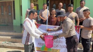 Kegiatan yang dimulai sejak pagi hingga pada siang hari ini pun diwarnai dengan penyerahan cindera mata berupa 1 (satu) buah sapu ijuk dan 1 (satu) buah tempat sampah, guna Melancarkan kegiatan Pembersihan Tempat Ibadah dalam Rangka menyongsong hari Bhayangkara ke-78 Tahun 2024.