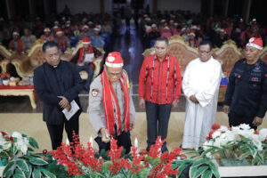 Setelah Ibadah Natal yang berlangsung dengan penuh khidmat, kegiatan pun dilanjutkan dengan acara syukuran yang turut dihadiri oleh Kapolres Kepulauan Tanimbar AKBP UMAR WIJAYA, S.I.K., bersama Wakapolres Kompol FRIHAMDENI, S.H, S.I.K, M.A., beserta para PJU, Danki Brimob, Forum koordinasi umat beragama Kabupaten Kepulauan Tanimbar, Personel Polres Kepulauan Tanimbar dan Personel Brimob Kompi 3 Batalyon C Pelopor bersama Bhayangkari dan Keluarga.