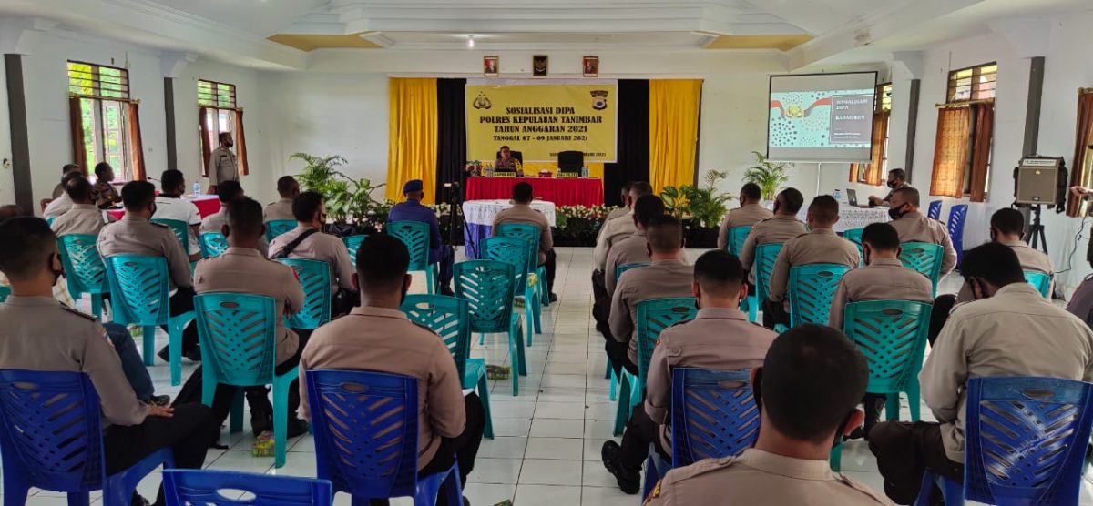Kapolres Kepulauan Tanimbar dalam arahannya pada kegiatan Sosialisasi DIPA dimaksud, menyampaikan beberapa petunjuk, arahan sekaligus penekanan kepada para Peserta yang hadir diantaranya, beliau mengatakan bahwa kegiatan Sosialisasi DIPA ini sangat penting karena terkait dengan Anggaran Polres Kepulauan Tanimbar di Tahun 2021. Beliau juga menekankan bahwa, mekanisme penyerapan anggaran di Tahun 2020 ada yang belum terlaksana dengan baik sesuai yang diharapkan, dan terhadap Pengusulan anggaran jangan hanya mengcopy paste dari tahun – tahun sebelumnya sehingga tidak ada perubahan pada anggaran Polres Kepulauan Tanimbar.