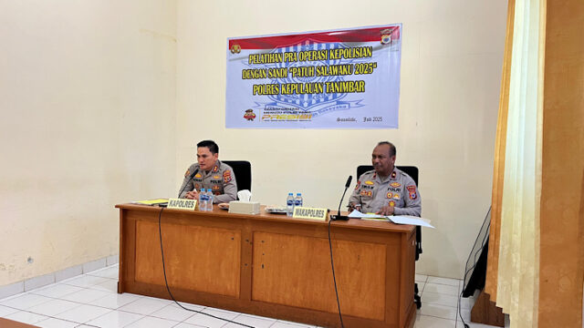 Tribratanews.polrestanimbar.com – Polda Maluku, Kepolisian Resor Kepulauan Tanimbar, Dalam upaya untuk mempersiapkan pelaksanaan Operasi Kepolisian dengan sandi Patuh Salawaku 2025, Polres Kepulauan Tanimbar menggelar Latihan Pra Operasi (Latpraops) yang berlokasi di ruang Vidcon Mapolres Kepulauan Tanimbar, Jumat (11/07/25).