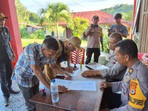 Tak hanya melalui gelaran Patroli dan Operasi maupun giat pengamanan lain yang biasanya dilakukan, namun pada hari Sabtu tanggal 13 April 2024 sekira pukul 13.25 WIT bertempat di Polsek Kormomolin, telah dilakukan mediasi penyelesaian bentrok yang terjadi diantara Desa Alusi Kelaan dengan Desa Alusi Batjas dan dipimpin oleh Kabag Ops Polres Kepulauan Tanimbar AKP H. LAISINA.