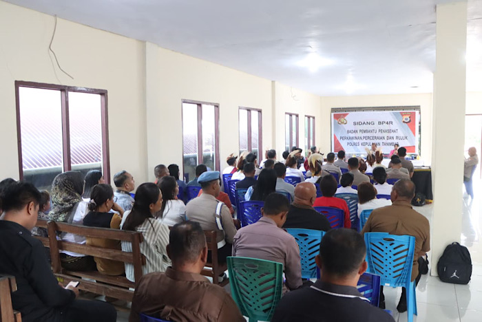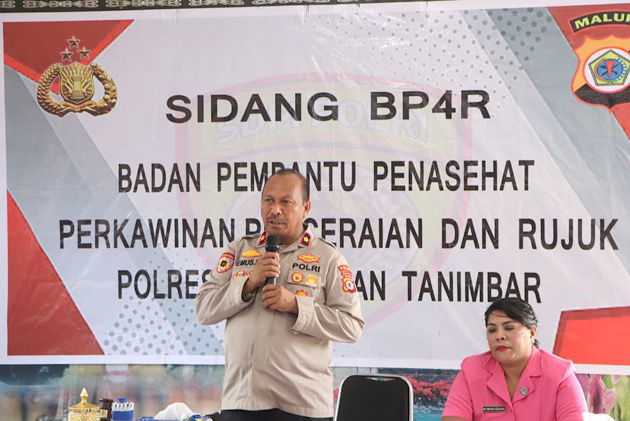 Tribratanews.polrestanimbar.com – Polda Maluku, Kepolisian Resor Kepulauan Tanimbar, Polres Kepulauan Tanimbar menggelar Sidang Pembinaan Perkawinan BP4R (Badan Pembantu Penasehat Perkawinan Perceraian dan Rujuk) bagi 11 Personel Polri beserta calon Pasangannya.