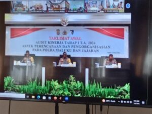 Tribratanews.polrestanimbar.com – Polda Maluku, Kepolisian Resor Kepulauan Tanimbar, Melalui Zoom Meeting, jajaran Polres Kepulauan Tanimbar ikuti Taklimat awal Audit Kinerja Itwasda Polda Maluku Tahap I T.A. 2024., dengan aspek perencanaan dan pengorganisasian, yang bertempat di Ruang Vidcon Mapolres Kepulauan Tanimbar, Rabu (06/03/24).