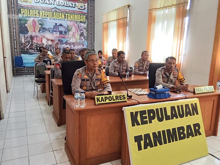 Dalam kegiatan yang dipimpin oleh Waka Polda Maluku, Brigjen Pol STEPHEN M. NAPIUN, S.I.K., turut dihadiri para PJU Polda Maluku, serta diikuti melalui Zoom Meeting oleh Kapolres Kepulauan Tanimbar AKBP UMAR WIJAYA S.I.K., Wakapolres Kompol FRIHAMDENI S.H, S. I. K. M.A., beserta para PJU Polres Kepulauan Tanimbar hingga para Kapolsek jajaran.