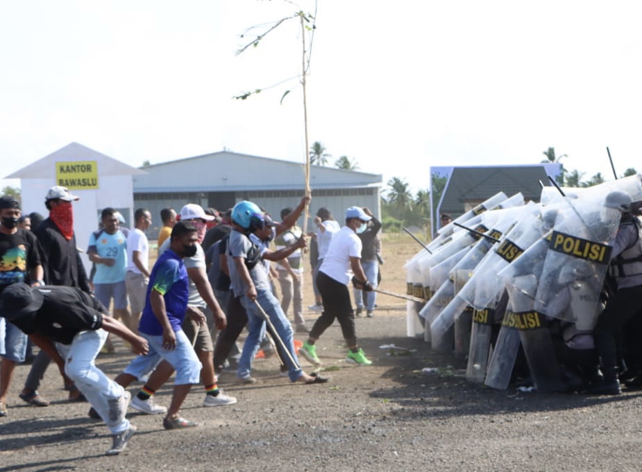 Polres kepulauan Tanimbar Simulasikan Pengamanan penanganan Pemilu 2024 melalui Peragaan Sispamkota