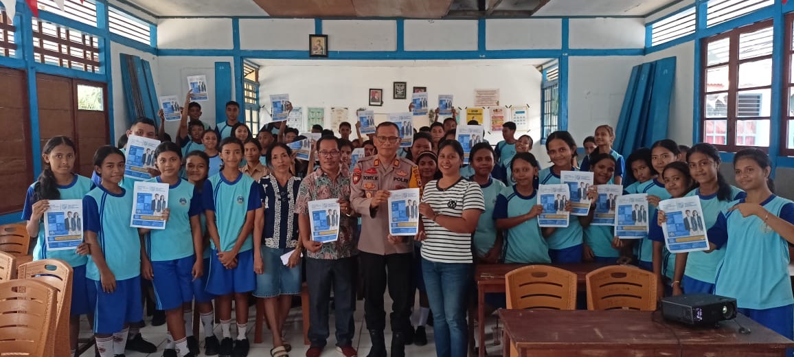 Tribratanews.polrestanimbar.com – Polda Maluku, Kepolisian Resor Kepulauan Tanimbar, Bag SDM Polres Kepulauan Tanimbar menggelar Sosialisasi Penerimaan Peserta Didik Baru (PPDB) SMA Kemala Taruna Bhayangkara T.A. 2025/ 2026 pada SMP SMP Santo Paulus Saumlaki dan SMP Negeri Negeri 1 Tanimbar Selatan, Kabupaten Kepulauan Tanimbar, Senin (13/01/25).