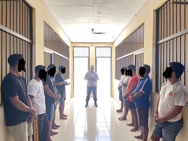 Para tahanan yang berada di Rumah Tahanan Polres Kepulauan Tanimbar dikumpulkan di pelataran sel untuk mengikuti kegiatan Ibadah Minggu yang dibawakan oleh Aipda Pendri Peea, dan didampingi oleh anggota jaga Sat Tahti Polres Kepulauan Tanimbar dan diikuti oleh seluruh Tahanan yang beragama Kristen.