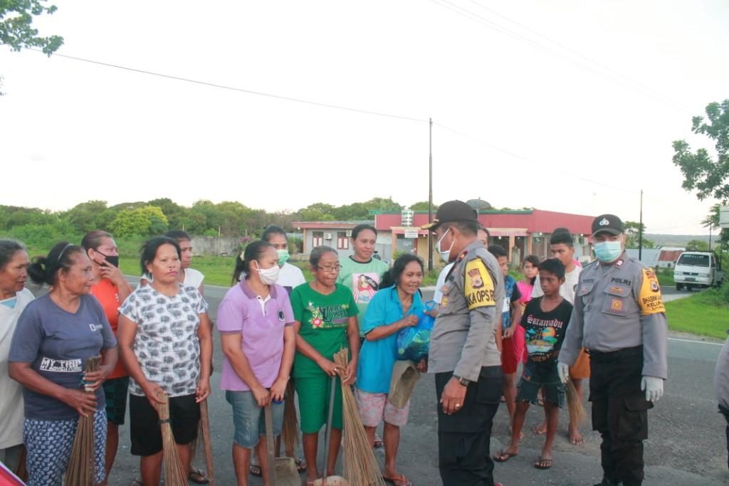 Tribratanews.polresmtb. com – Polda Maluku, Polres Maluku Tenggara Barat, Minggu tanggal 19 April 2020, Pukul 05.00 Wit sampai pukul 06.30 Wit, dilaksanakan kegiatan Bakti Sosial dalam bentuk pemberian Sembako oleh Personil Polres Maluku Tenggara Barat kepada para Pembersih jalan jalur Desa Olilit Raya.