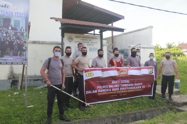 “Dalam rangka menyongsong Hari Bhayangkara ke – 74 tahuni 2020 ini, Polres Maluku Tenggara Barat melaksanakan kegiatan Bhakti Sosial fisik di beberapa tempat – tempat Ibadah di Kota Saumlaki, baik di masjid maupun di Gereja” Ujar Kompol Onas P. Lekawael.