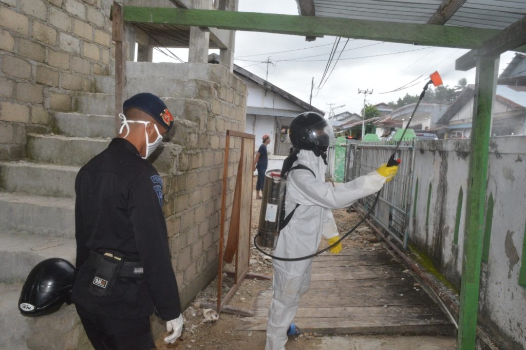 Polda Maluku, Polres Maluku Tenggara Barat – Penyemprotan Disinfektan kembali dilakukan oleh Polres Maluku Tenggara Barat bersama Brimob Kompi 3 Batalyon c Pelopor pada Masjid An-Nur Saumlaki, Kabupaten Kepulauan Tanimbar.Senin (25/5/2020).