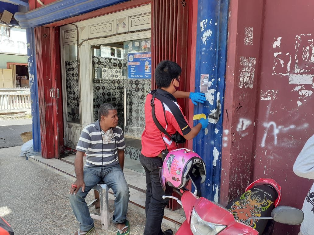 Tribratnews.polrestanimbar.com – Polda Maluku, Polres Maluku Tenggara Barat, Selasa tanggal 21 April 2020, Pukul 09.00 Wit, bertempat di pertokoan dan tempat – tempat keramaian di Kota Saumlaki,Kabupaten Kepulauan Tanimbar, telah dilaksanakan pemasangan sticker terkait Ancaman pidana bagi yang berkerumun saat pandemi corona.