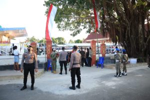 Personil Polres Tanimbar yang melakukan Pengamanan Terbuka yakni yang berpakaian dinas (Uniform) dan Pengamanan tetutup berpakaian Preman (Non Uniform) terlihat diberbagai sisi lapangan baik diluar dan didalam lokasi kegiatan Misa guna mengawal jalannya kegiatan.