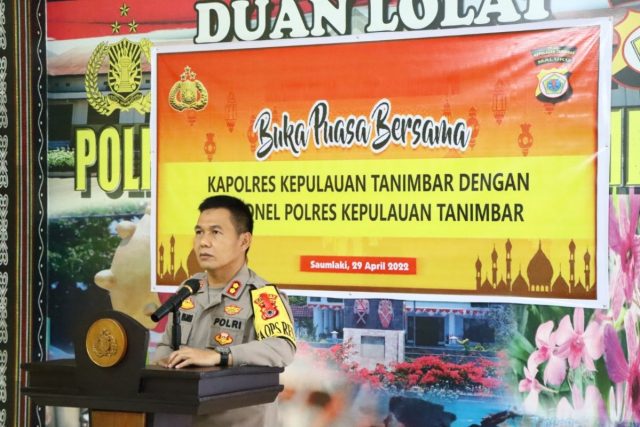 Tribratanews.polrestanimbar.com – Polda Maluku, Polres Kepulauan Tanimbar, Buka Puasa bersama personil Muslim digelar Kapolres Tanimbar digedung Pelayanan Publik Mapolres. Jumat (29/04/2022).