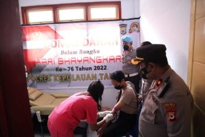 Tribratanews.polrestanimbar.com – Polda Maluku, Polres Kepulauan Tanimbar, Donor Darah Serentak dalam rangka hari Bhayangkara ke-76, digelar Polres Tanimbar di RSUD dr. PP. Magretty Saumlaki. Selasa (07/06/2022), pukul 09.00 wit.