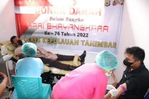 Kegiatan Donor darah serentak yang dilakukan oleh Polres Tanimbar dengan peserta Pendonor terdiri dari anggota Polri Polres Tanimbar itu sendiri yang digelar di RSUD dr. PP. Magretty Saumlaki ini, merupakan rangkaian kegiatan Bakti Kesehatan (Bakkes) dalam rangka hari Bhayangkara ke-76 tahun 2022 yang puncaknya akan jatuh pada tanggal 01 Juli 2022 nanti.