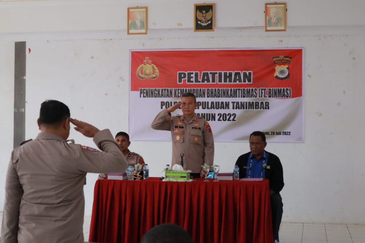 Tribratanews.polrestanimbar.com – Polda Maluku, Polres Kepulauan Tanimbar, Kegiatan Pelatihan Peningkatan Kemampuan Bhabinkamtibmas (Ft. Binmas) tahun 2022, digelar kepada personil Bhabainkamtibmas Jajaran Polres digedung Bhayangkara Polres pagi ini. Kamis (28/07).