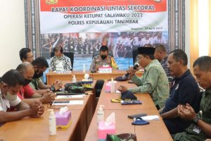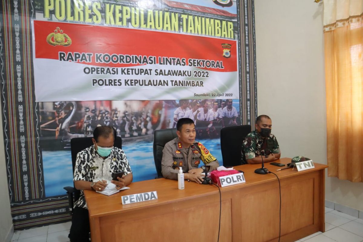 Tribratanews.polrestanimbar.com – Polda Maluku, Polres Kepulauan Tanimbar, pukul 10.30 wit, di ruang Vicon, digelar kegiatan Rapat Koordinasi Lintas Sektoral Operasi Ketupat Salawaku 2022. Jumat (22/04/2022).