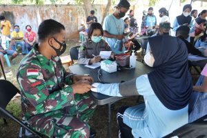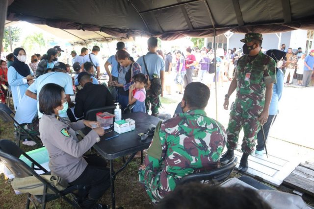 Tribratanews.polrestanimbar.com – Polda Maluku, Polres Kepulauan Tanimbar, dalam rangka HUT TNI AU yang ke-76 tahun 2022, Polres Tanimbar, TNI dan Brimob lakukan Gerai Vaksinas Mobile Presisi dosis 1, 2 dan 3 kepada masyarakat di Mako Satrad 245 Saumlaki. Selasa (19/04/2022). pukul 09.00 wit s/d 15.00 wit.