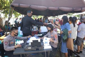 Kegiatan Gerai Vaksinasi yang dilakukan dikordinir oleh Kasi Dokkes Polres Tanimbar Ipda dr. Merlin E. Suarlembit bersama personilnya dibantu personil TNI, Brimob dan tenaga Vaksinator dari RSUD dr. PP. Magretty Saumlaki dengan dosis Vaksin yang di gunakan, sebanyak 100 dosis, terdiri dari jenis Pfiser 58 dosis, yang diberikan kepada penerima dosis pertama 5 orang, dosis kedua 10 orang dan dosis ketiga 43 orang.