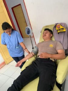Setelah mendengar laporan tersebut, yang karena golongan darah Bhabinkamtibmas dan Pasien sama sehingga Sebagai bentuk peduli kemanusiaan, Bhabinkamtibmas dengan sukarela mendonorkan darahnya kepada salah satu warga binaan atas nama Yokbet Luturmas yang ingin melahirkan secara sesar tetapi HB / Hemoglobinnya kurang sehingga membutuhkan pendonor.