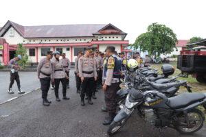 Setelah pelaksanaan Apel Bhabinkamtibmas dalam rangka Bhabinkamtibmas Polri Peduli Stunting selesai dilaksanakan, Kapolres Kepulauan Tanimbar AKBP Umar Wijaya, S.I.K memeriksa Personil dan kendaraan dinas yang digunakan terkait kesiapan Bhabinkamtibmas Polres Kepulauan Tanimbar dalam melaksanakan Tugas.