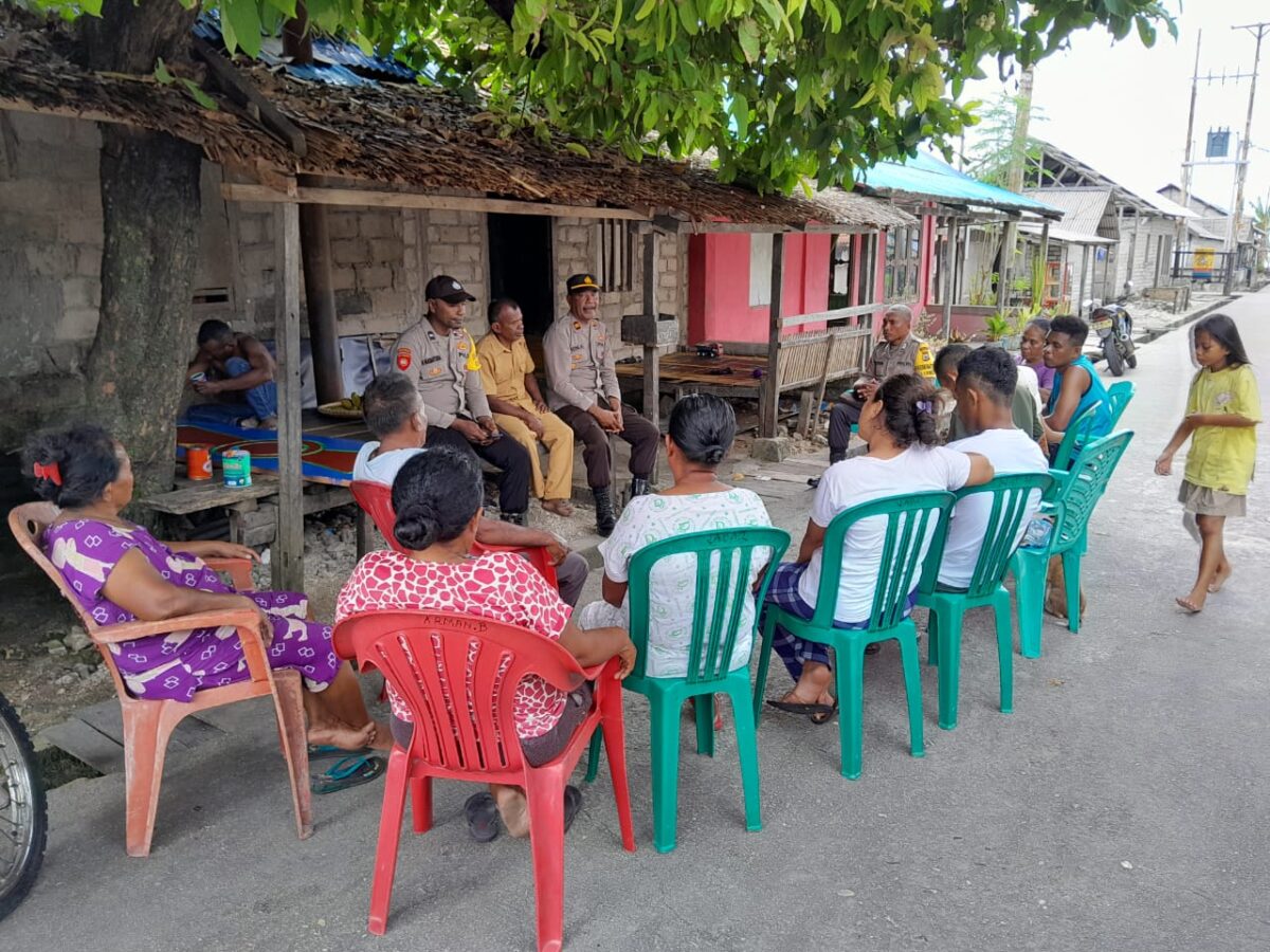 Tribratanews.polrestanimbar.com – Polda Maluku, Polres Kepulauan Tanimbar, Kapolsek Kormomolin Iptu Jhon.M.Amelaman bersama Anggota melaksanakan giat Jumat curhat di Desa Alusi Kelan Kecamatan Kormomolin, Kabupaten Kepulauan Tanimbar, Jumat (06/01/23).
