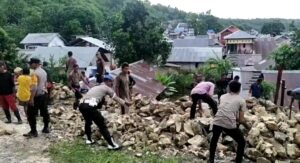 Tribratanews.polrestanimbar.com – Polda Maluku, Polres Kepulauan Tanimbar, Dalam rangka mempererat hubungan kemitraan dengan masyarakat, Polsek Nirunmas Laksanakan giat Bakti sosial dengan bergotong royong bersama Masyarakat dalam pembangunan gedung gereja, Sabtu (11/03).