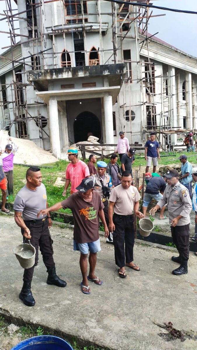 Dalam giat tersebut, Personil Polsek Nirunmas membantu Warga Desa Tutukembong dengan cara mencampur Semen dan mengangkat batu untuk pembangunan Talit pada halaman Gedung Gereja Bethezda Desa Tutukembong.