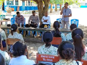Rangkaian kegiatan yang dilakukan dengan Pembukan oleh Kapolsek Selaru Iptu A. Titirloloby yang menyampaikan tentang Disiplin dan Kepatuhan terhadap aturan Sekolah maupun Orang tua tentang Jam belajar kepada para siswa.