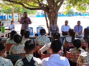 Tribratanews.polrestanimbar.com – Polda Maluku, Polres Kepulauan Tanimbar, di SMP Negeri 1 Selaru, Kecamatan Selaru, Kabupaten Kepulauan Tanimbar Sosialisasi Pembinaan Kamtibmas di Ruang Lingkup Sekolah dan Masyarakat, dilakukan personil Polsek Selaru. Rabu (18/05/2022).