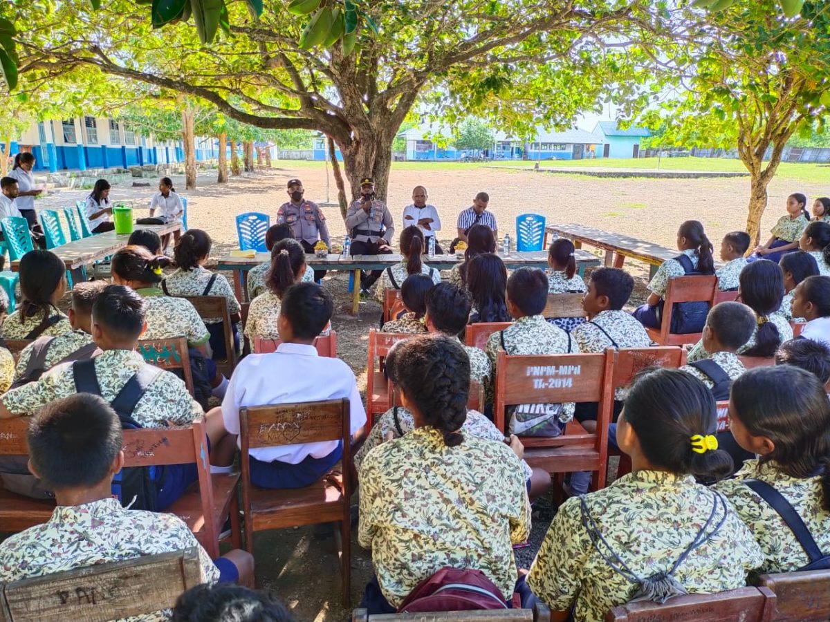 Tribratanews.polrestanimbar.com – Polda Maluku, Polres Kepulauan Tanimbar, di SMP Negeri 1 Selaru, Kecamatan Selaru, Kabupaten Kepulauan Tanimbar Sosialisasi Pembinaan Kamtibmas di Ruang Lingkup Sekolah dan Masyarakat, dilakukan personil Polsek Selaru. Rabu (18/05/2022).